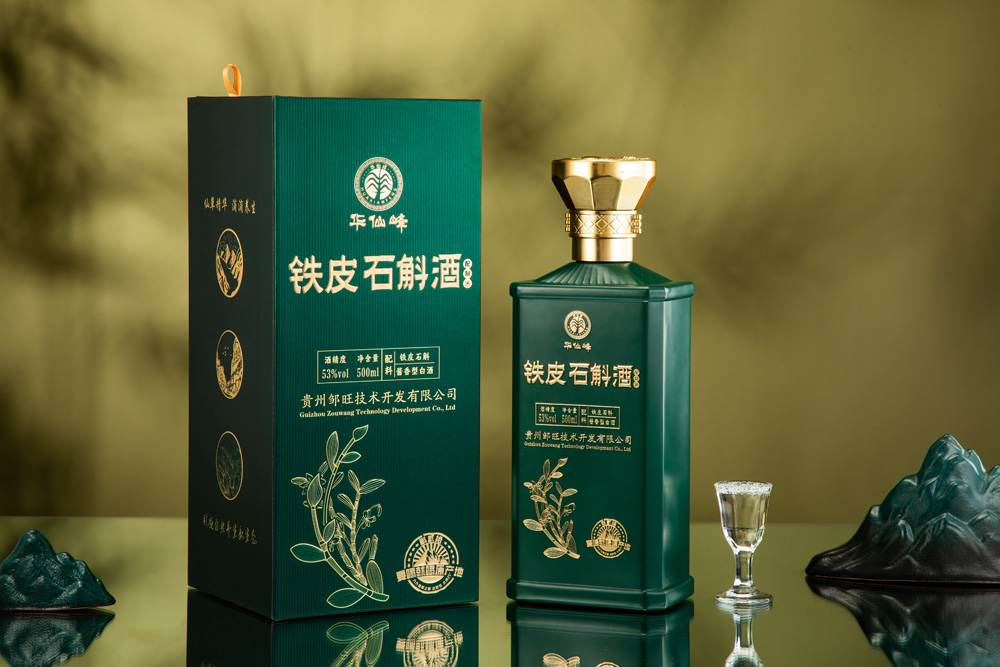 华仙峰的第一产品“铁皮石斛酒”,是来自贵州茅台镇的53度酱香型白酒;第二产品“铁皮石斛养生面”,是来自重庆云阳的铁皮石斛养生面。“铁皮石斛酒”有瓶装酒、封坛酒和定制酒三个产品系列。