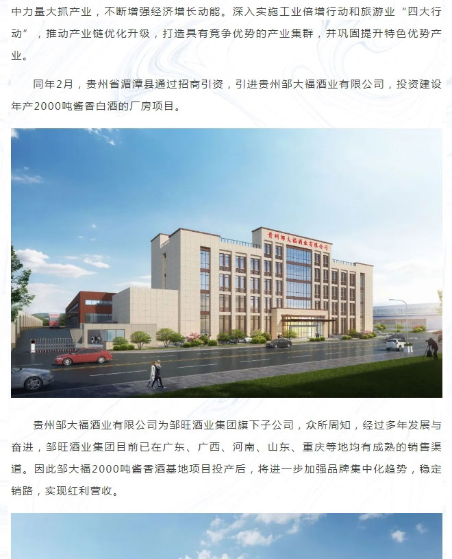 邹大福酱香白酒年产2000吨厂房项目稳步推进中!