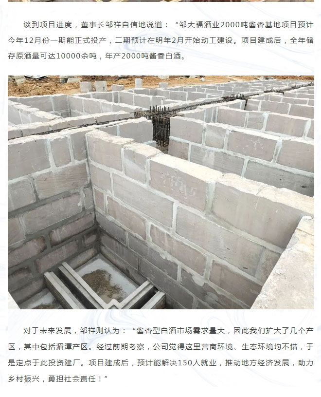 邹大福酱香白酒年产2000吨厂房项目稳步推进中!